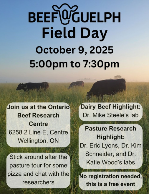Join us on October 9th, 2025, at the Ontario Beef Research Centre for a Beef@Guelph Field Day!