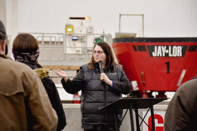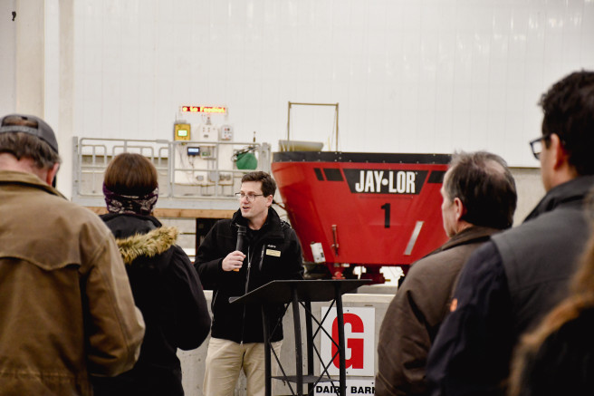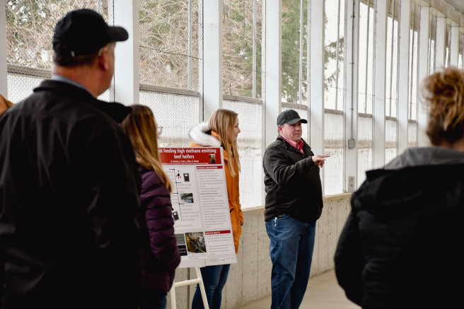 Tysson Amidon, the research center's technical foreman, explained some of the nearby equipment and how it supports the research being done. M.Sc. candidate Katie Kroeze explained her upcoming project with Dr. Katie Wood on beef heifer methane emissions.